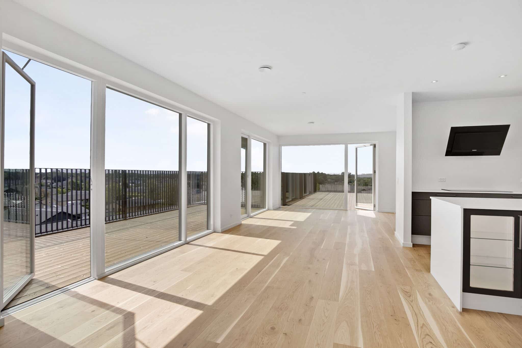 Boligerne er generelt indrettet med opholdsrum orienteret mod syd og har udgang til egen altan eller tagterrasse. Værn ved altangange, altaner og tagterrasser er udført i glas for bedst muligt lysindfald.